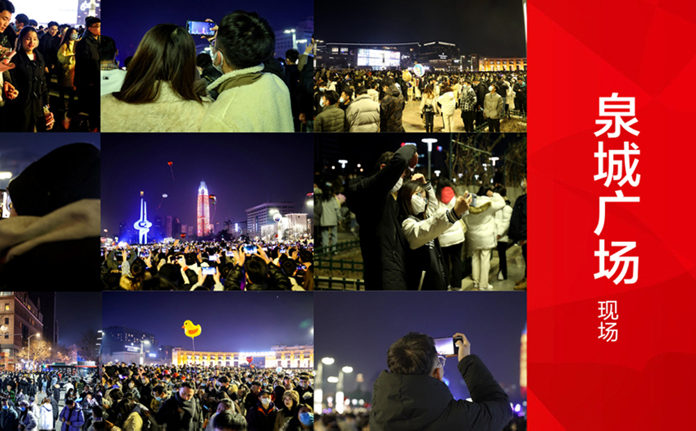 隨著新年鐘聲的敲響,數萬市民在泉城廣場齊聲告別2021!10、9、8、7……3、2、1,2022新年快樂!